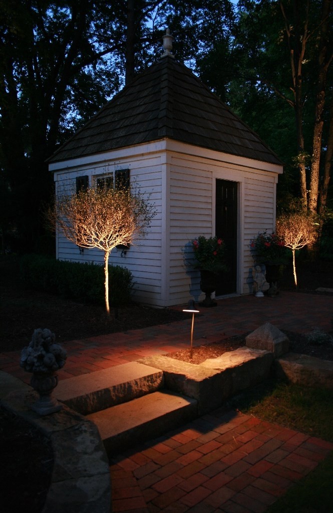 If you are to this point through the site you can probably see how we love lighting, but only if it is subtle and does not look like an airport. To say we love lighting might be an understatement, we are crazy for it. As soon as the plants are in the ground we are measuring the exact locations for fixtures and calculating the precise foot-candles and degrees of light cones for the job. Take a look at some examples. Remember we are not professional photographers and enjoy!