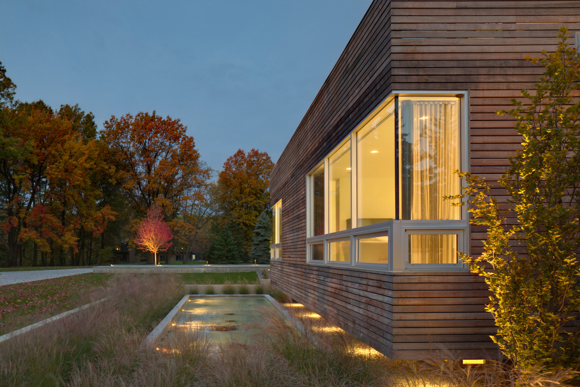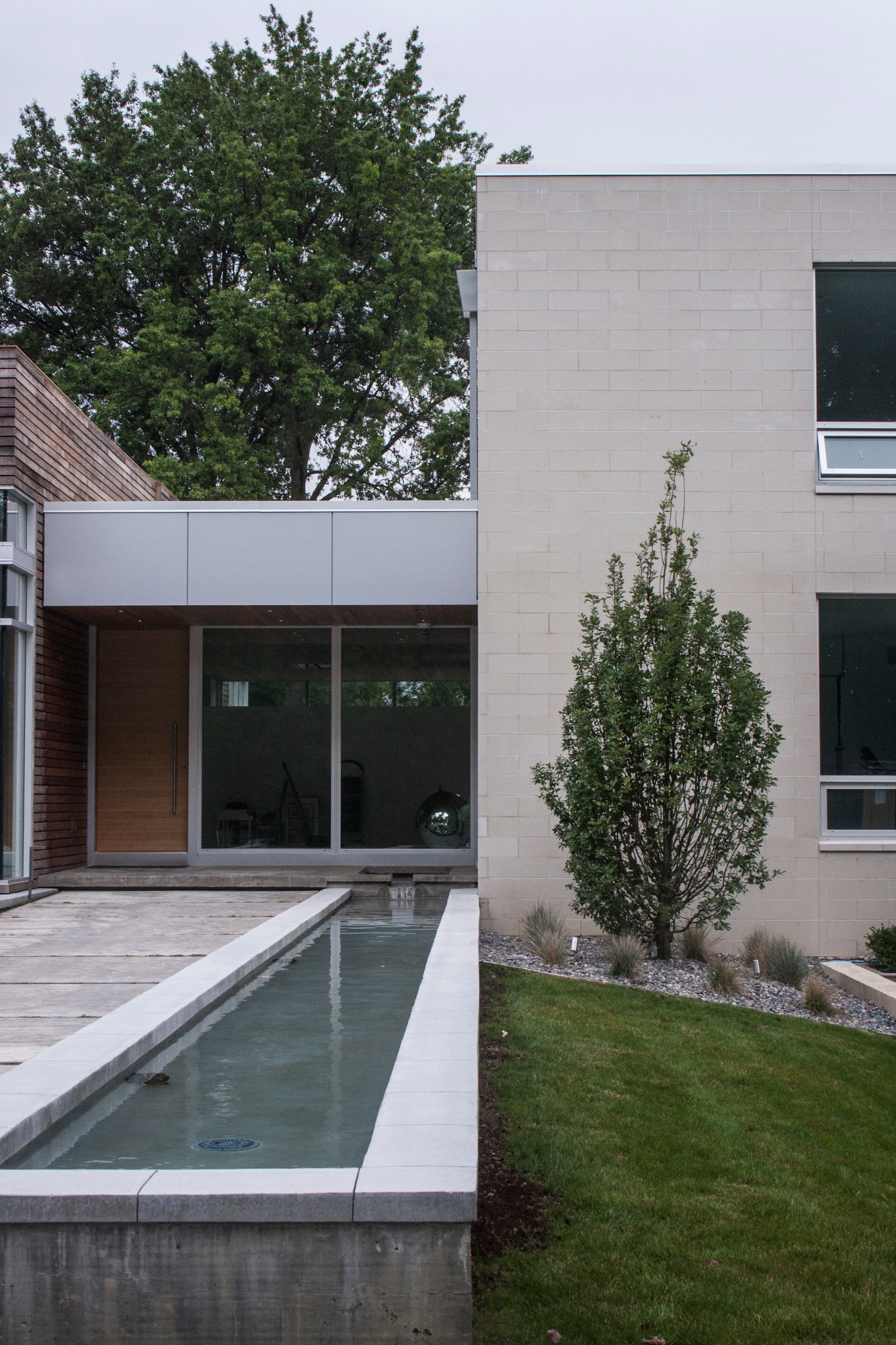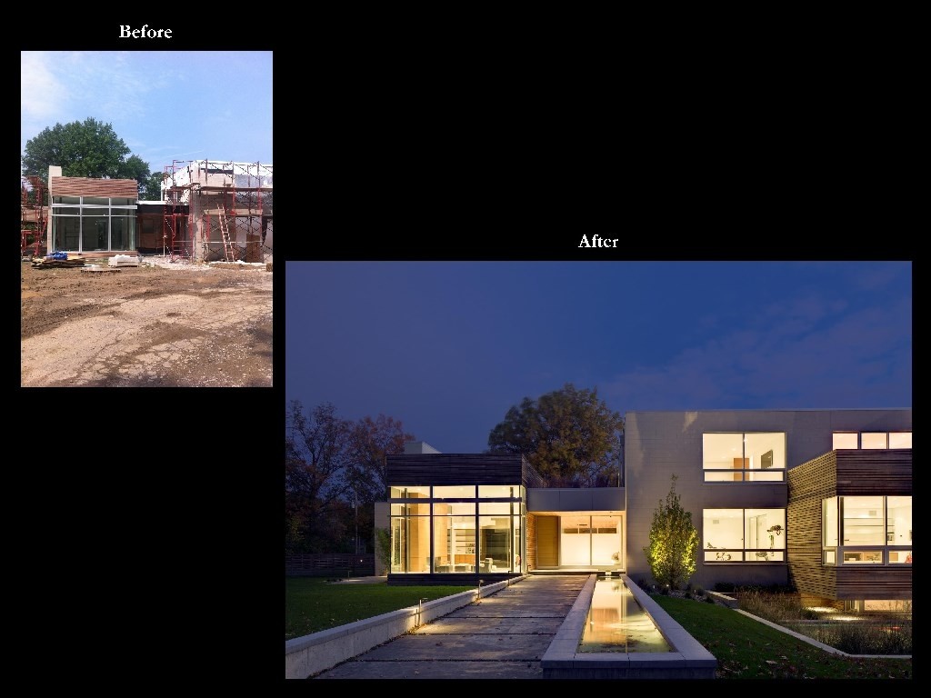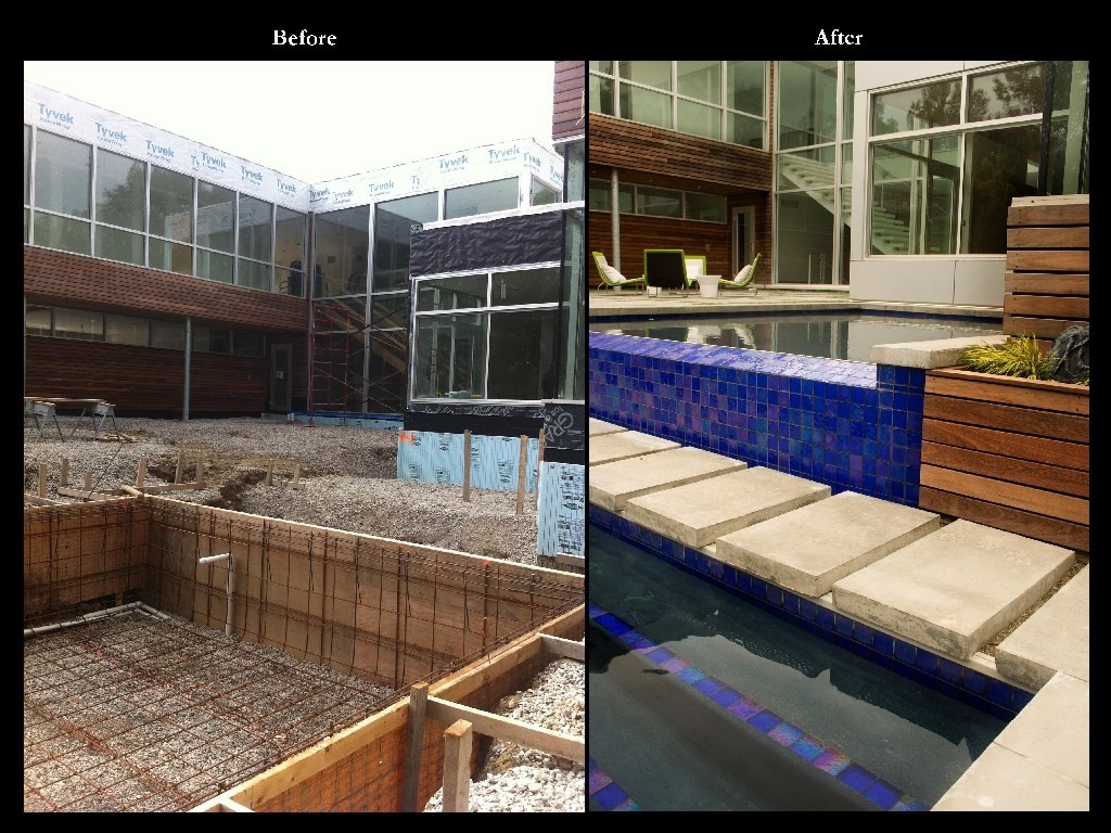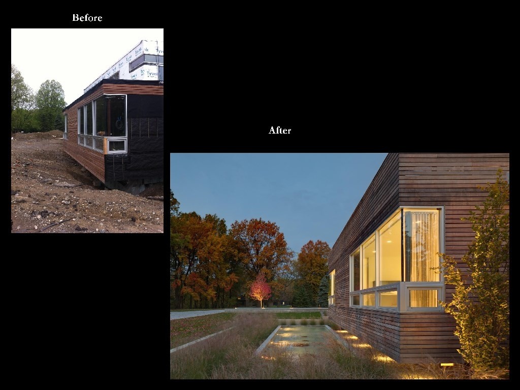Wow! We had alot of fun with this one. There are not too many contemporary homes in Cleveland let alone the historic suburb of Shaker Heights. This project was a departure from the more traditional landscape architecture we normally do but due to our love of almost anything mid-century modern or any Eames chair for that matter we jumped at the chance to be a part of it. Covered outdoor living room with TV and fireplace, sunken conversation fire pit with built in seating, 2 reflecting pools (1 with infinity edge), 1 rill, 1 swimming pool, master terrace are just the main points. Wonderful clients, wonderful project; life is good. House designed by Dimit Architects