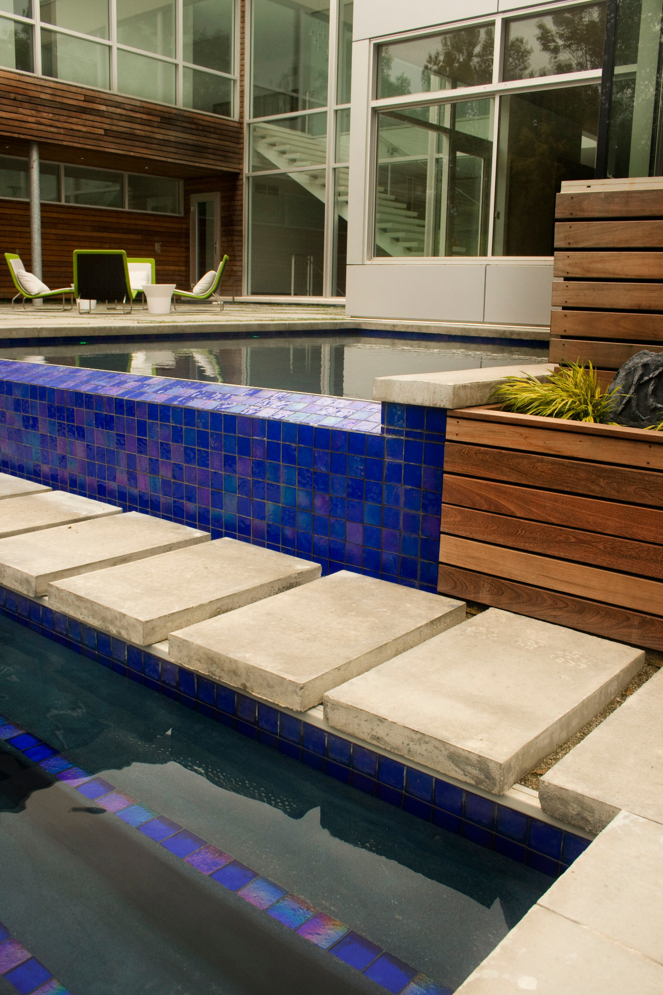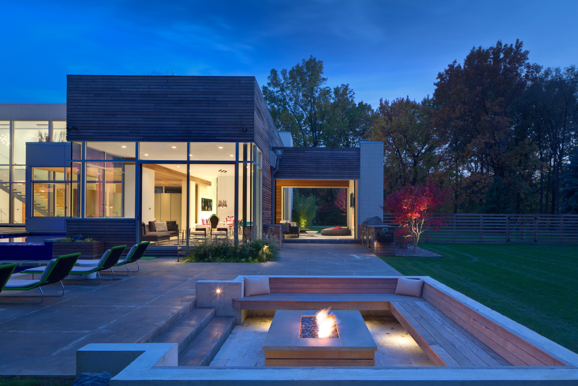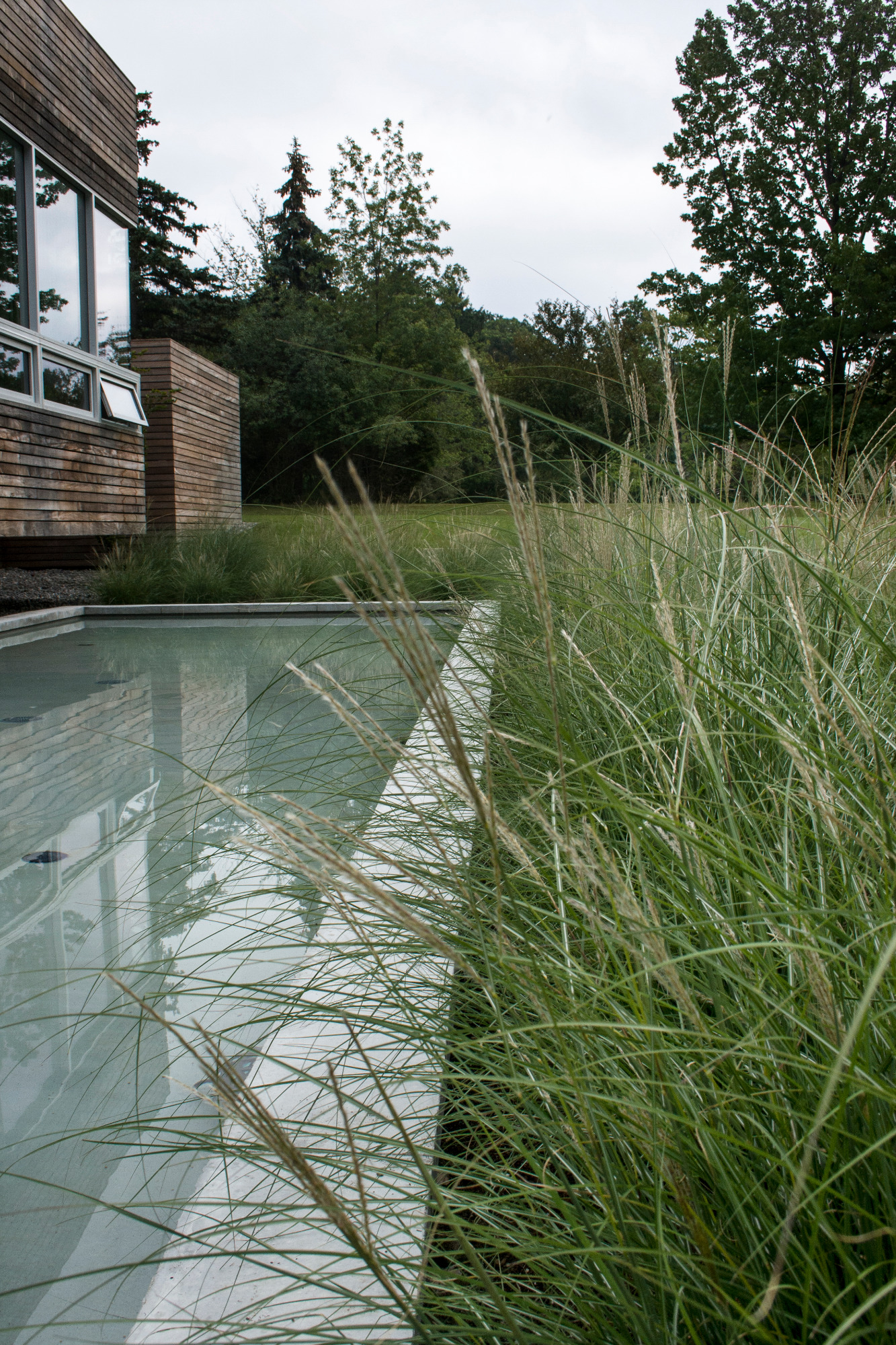 Wow! We had alot of fun with this one. There are not too many contemporary homes in Cleveland let alone the historic suburb of Shaker Heights. This project was a departure from the more traditional landscape architecture we normally do but due to our love of almost anything mid-century modern or any Eames chair for that matter we jumped at the chance to be a part of it. Covered outdoor living room with TV and fireplace, sunken conversation fire pit with built in seating, 2 reflecting pools (1 with infinity edge), 1 rill, 1 swimming pool, master terrace are just the main points. Wonderful clients, wonderful project; life is good. House designed by Dimit Architects